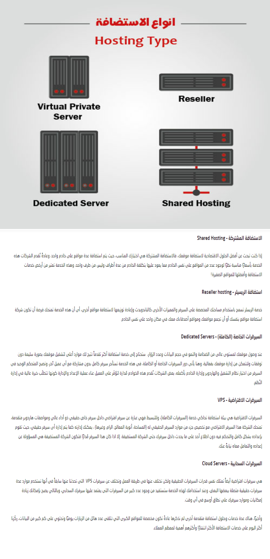 الفيديو التالي - شرح لانواع الاستضافة
