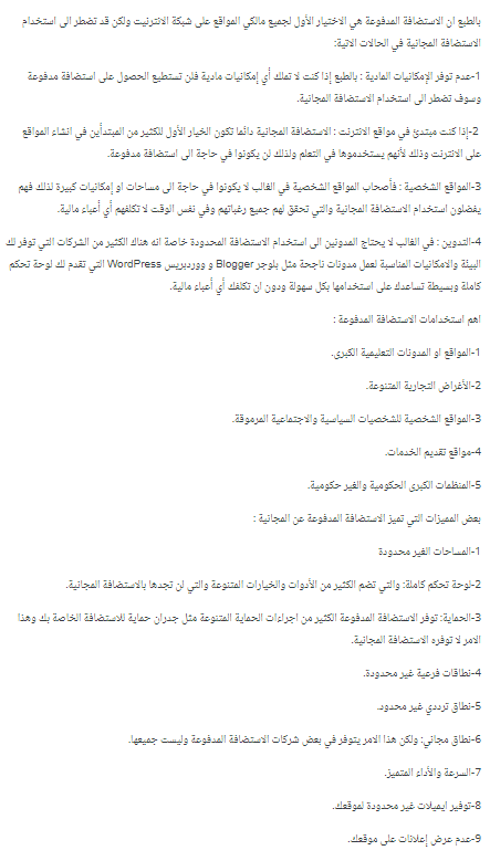 الصورة التالية توضح مميزات الاستضافة المدفوعة