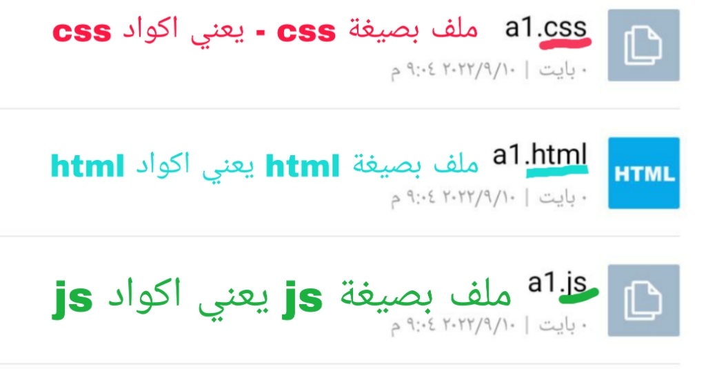 باالصورة اعلاها سوف تلاحظ ان كل ملف/صيغة لها معنى معين