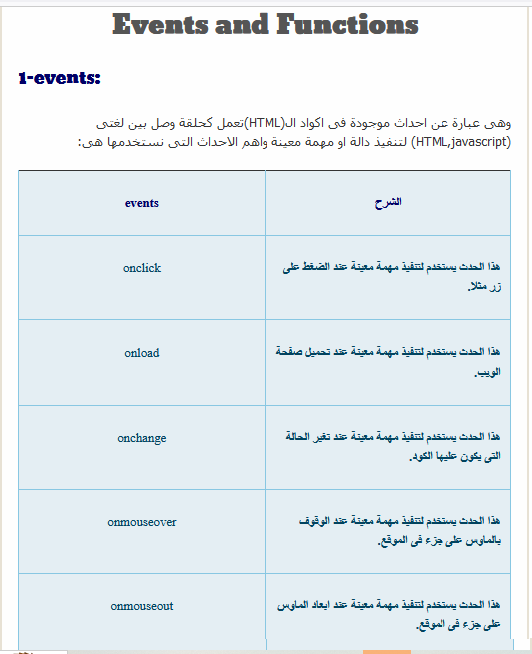 ويعني الاحداث events هو من الاكواد/الاوامر onclick الكود/الامر