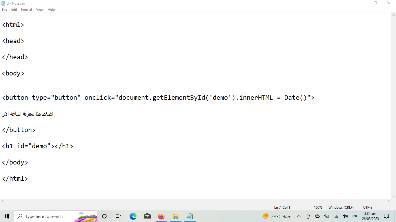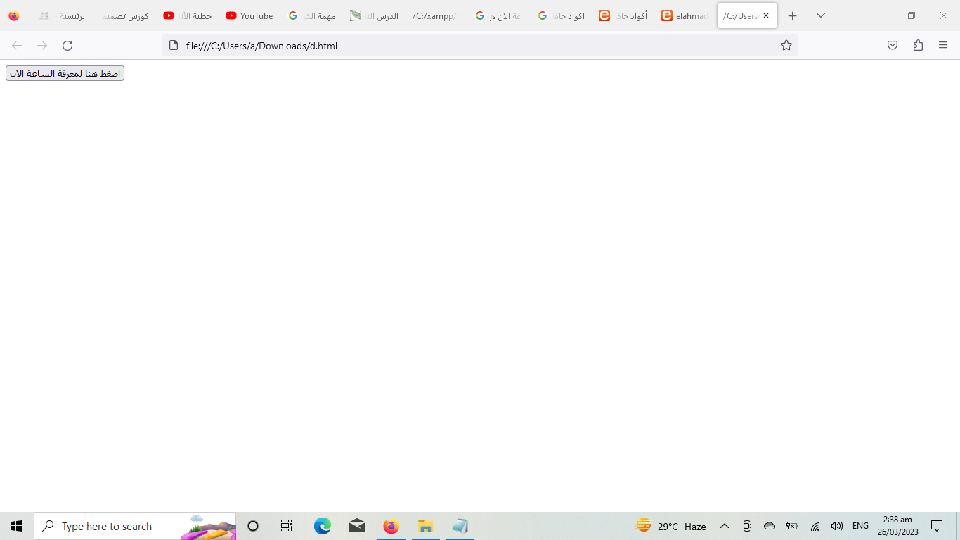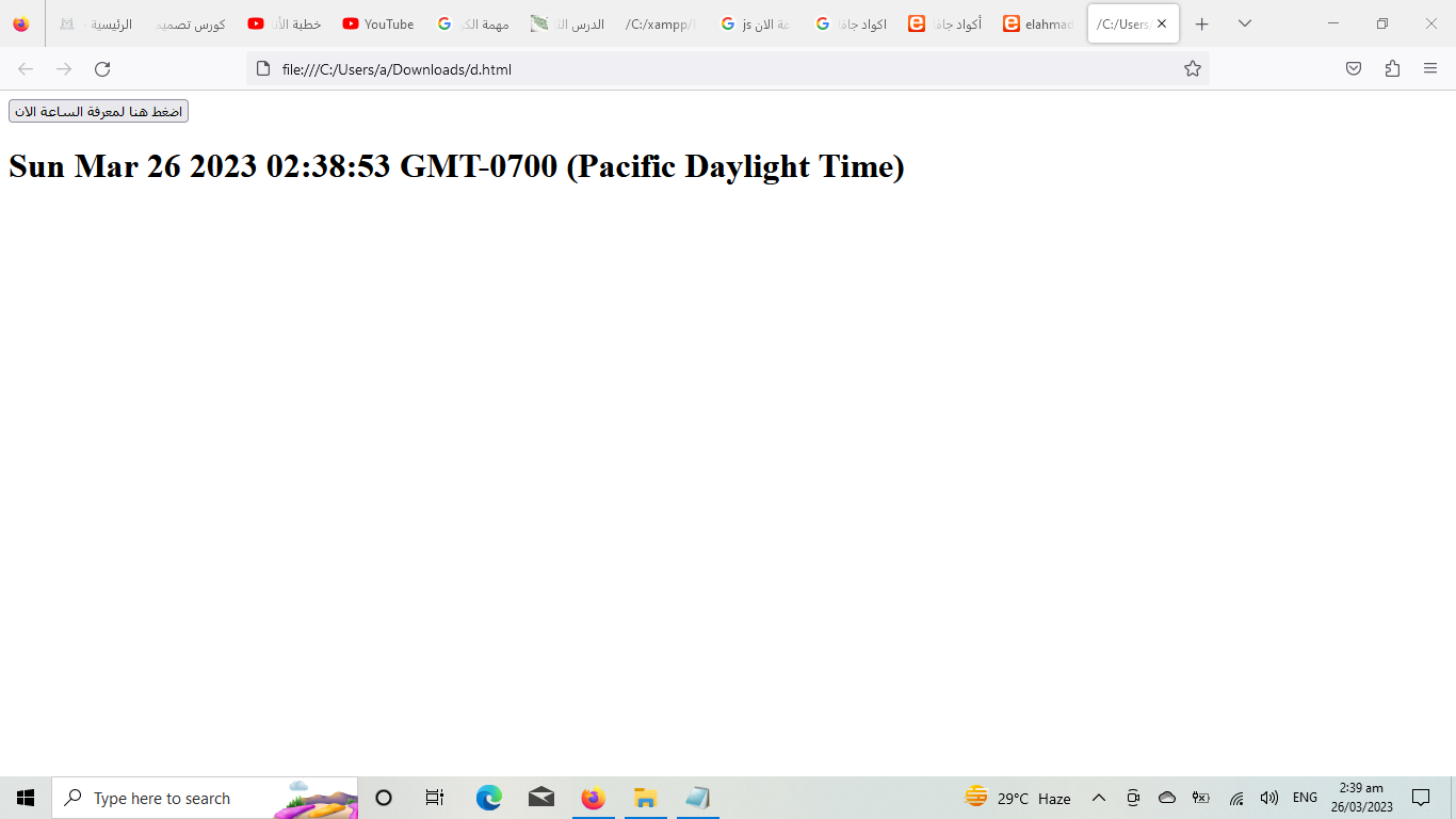 عند الضغط علي الزر سوف يظهر لنا الوقت الان وتاريخ اليوم