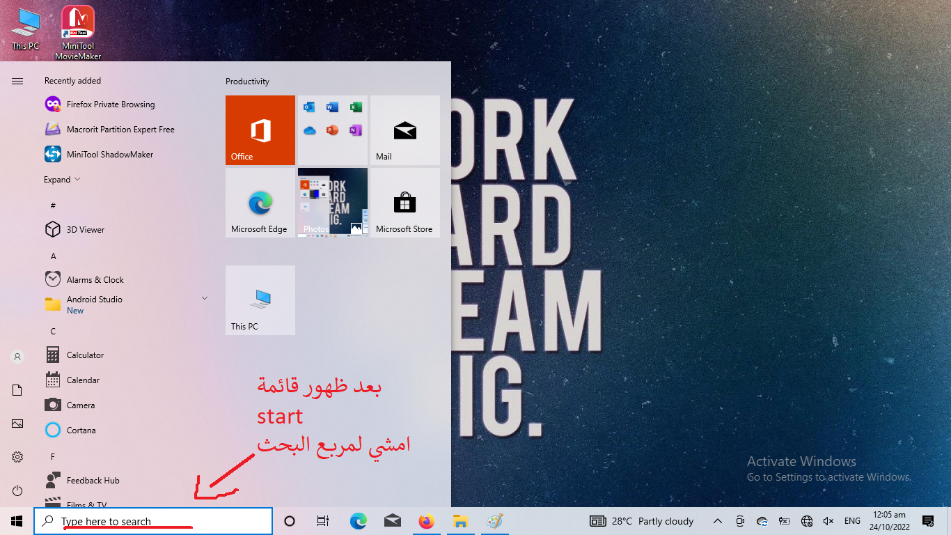 من الخيارات البتظهر ليك اختار نوع الويندز والحزمة