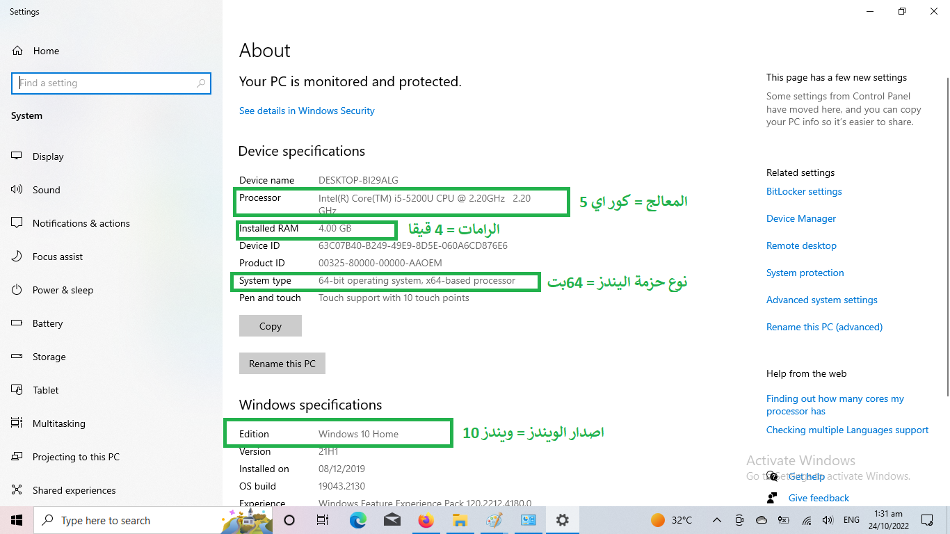 كيف اعرف نوع نوع اصدار الويندز و نوع الحزمة وحجم الرام ؟
