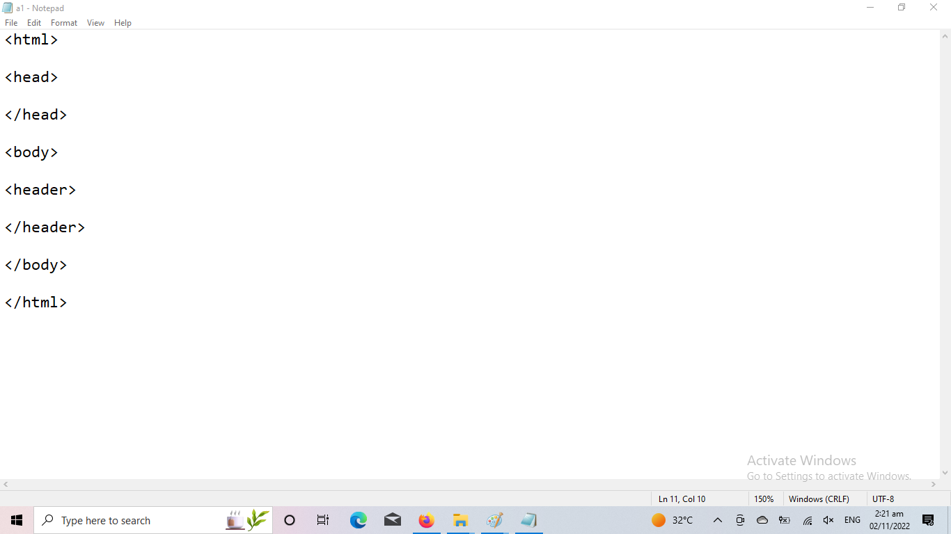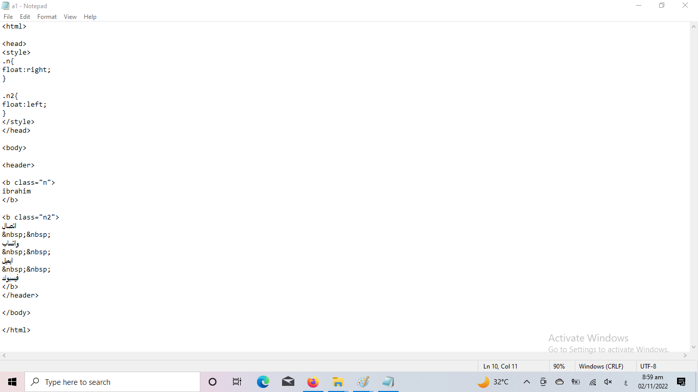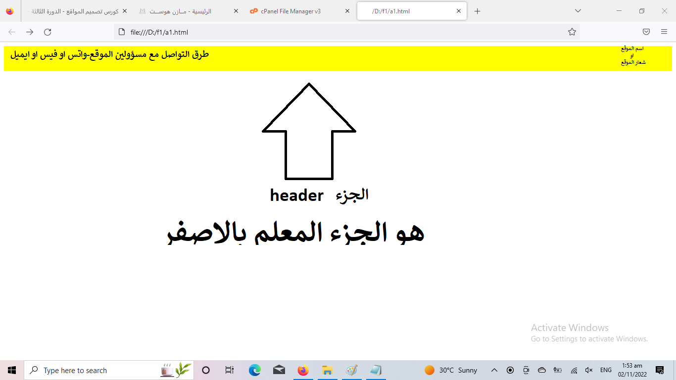 body بين بداية ونهاية الكود header ثاني خطوة-هي كتابة الكود