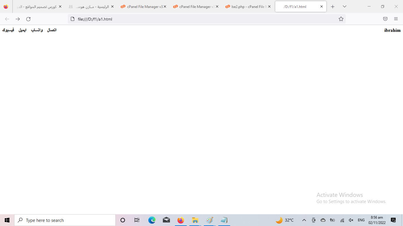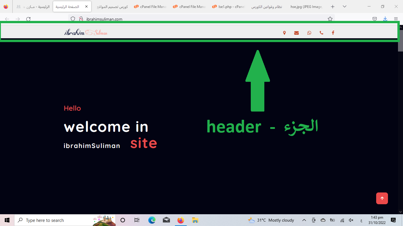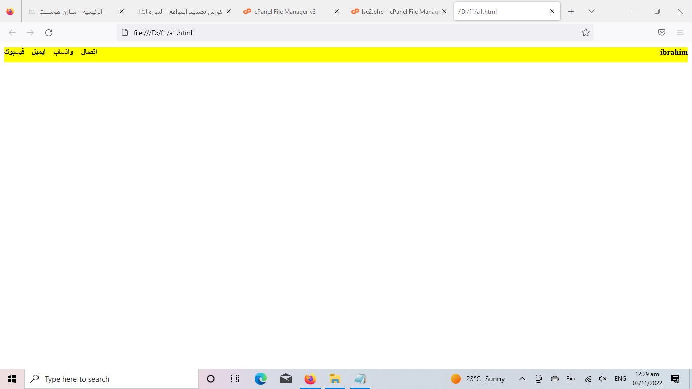 لاحظو ان اول تحكم لعنوان الموقع او شعار الموقع - هو تغيير الاتجاه - بالكود اضفنا كود تغيير نص اسم ابراهيم لجهة اليمين
